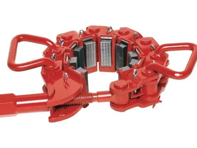 The Safety Clamps for tubing (T) and casing (C). Multipurpose (MP) safety clamps are adjustable to a variety of tubular. The clamp has its own box with a nut wrench and an Allen wrench. Manual clamps are equipped with screw and nut combination. The nut secures the clamp around the pipe and should be tightened with the supplied nut wrench. The clamp grips uniformly by design. The individual links give the clamp flexibility to wrap around the pipe and the inserts are spring loaded.